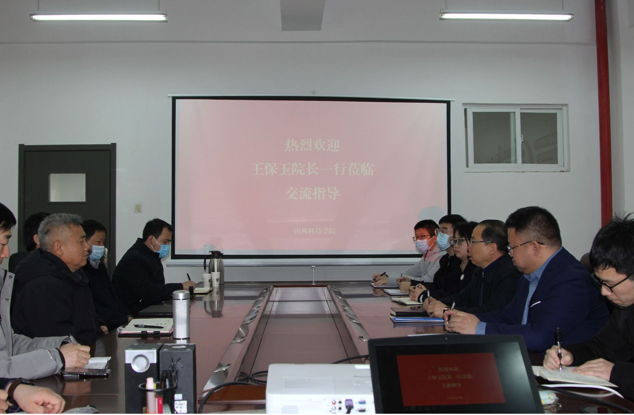 座谈会上,党委副书记吉育峰致欢迎辞,对王保玉、赖小荣、贺军民等一行人来访表示热烈欢迎。并对学校的办学理念、办学规模、机构设置、学科专业和未来发展目标方向等办学基本情况进行介绍。同时提出希望双方可以共同合作,逐步在人才培养、项目合作等方面深度合作,共同为晋城经济发展做出贡献。