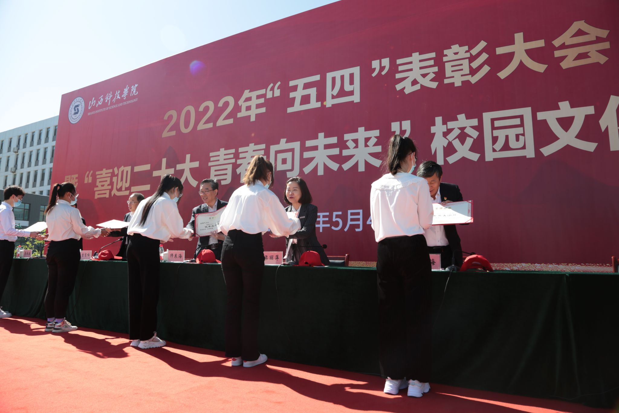 校纪委书记成广海宣读《关于表彰2022年“五四”先进集体和优秀个人的决定》,授予会计学2104团支部等6个团组织“先进团支部”称号,授予张睿等19名同学“优秀共青团干部”称号,授予侯瑞欣等30名同学“优秀共青团员”称号,授予李锦阳等17名同学“社会实践先进个人”称号,授予巩晏辰等23名同学“优秀志愿者”称号。