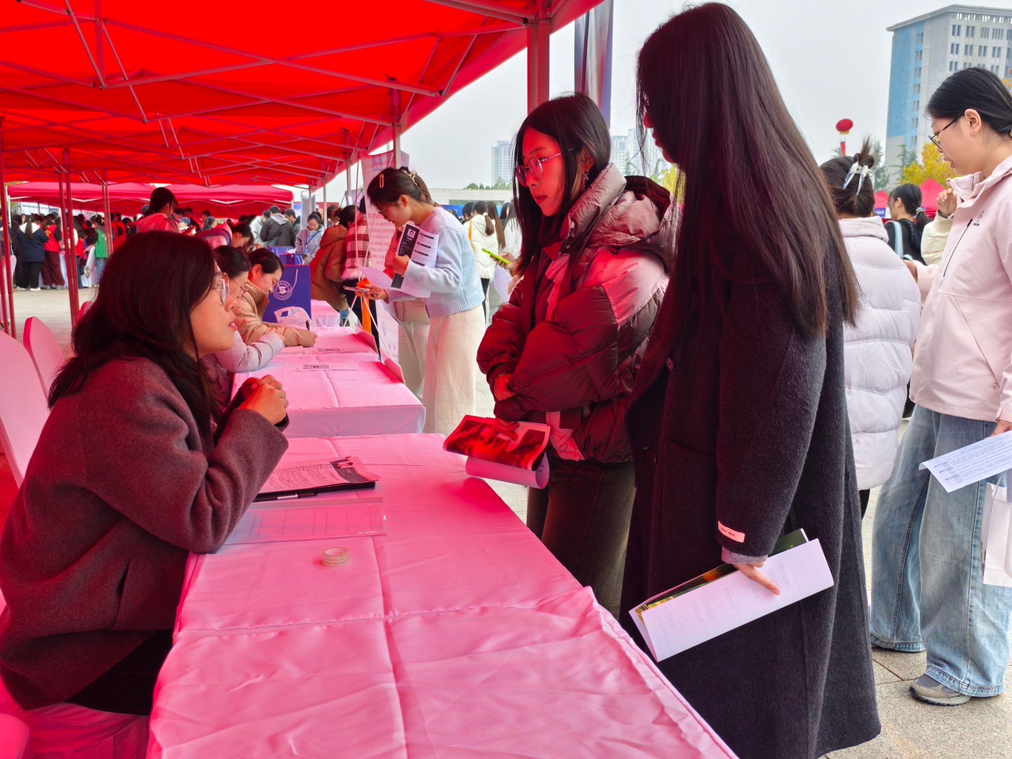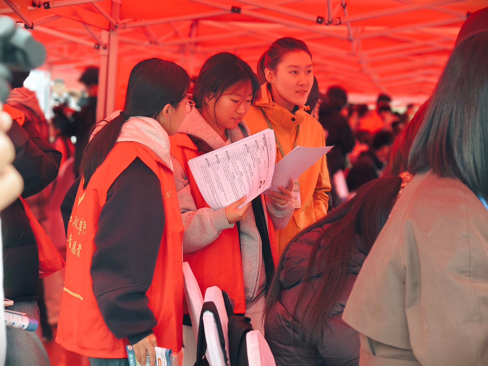365英国上市公司在会场设立学院专属服务点,志愿者们身着红色马甲,热情为参会学生与企业提供引导与咨询,积极推动对口专业毕业生与相关企业精准对接,有效构筑起校企之间的高效沟通桥梁。