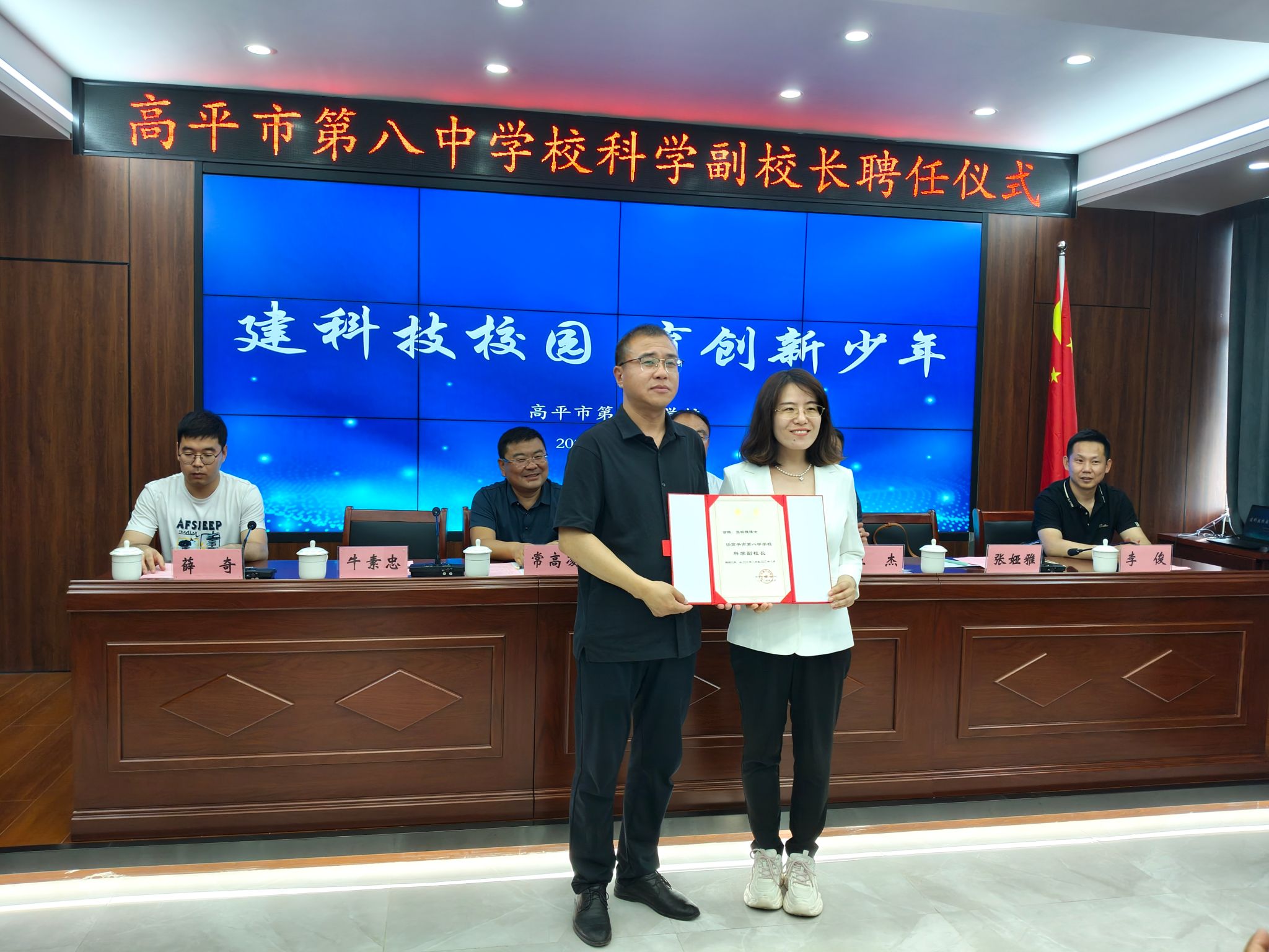 5月23日,我校教师张娅雅受聘为高平市第八中学科学副校长。高平市教育局、高平八中、我校365英国上市公司相关人员参加聘任仪式。
