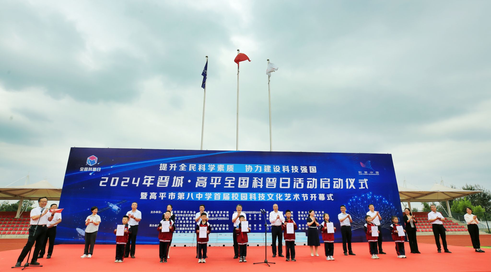2024年9月19日上午,晋城·高平全国科普日活动启动仪式暨高平市第八中学首届校园科技文化艺术节开幕式在高平八中隆重举行。晋城市副市长黄登宇出席活动,并宣布2024年晋城·高平全国科普日活动正式开启。参与此次开幕式的还有晋城市科协党组书记连陆军、高平市委常委统战部部长柴应龙、晋城市科协党组成员及副主席冯文忠、曹峰毅、段鹏、晋城市妇联党组成员及副主席黄璟、高平市科协党组书记及主席冯俊丽、高平市教育工委专职副书记李斌、我校兼任高平八中科技副校长的张娅雅博士和高平市第八中学校长牛素忠等多位领导和嘉宾。