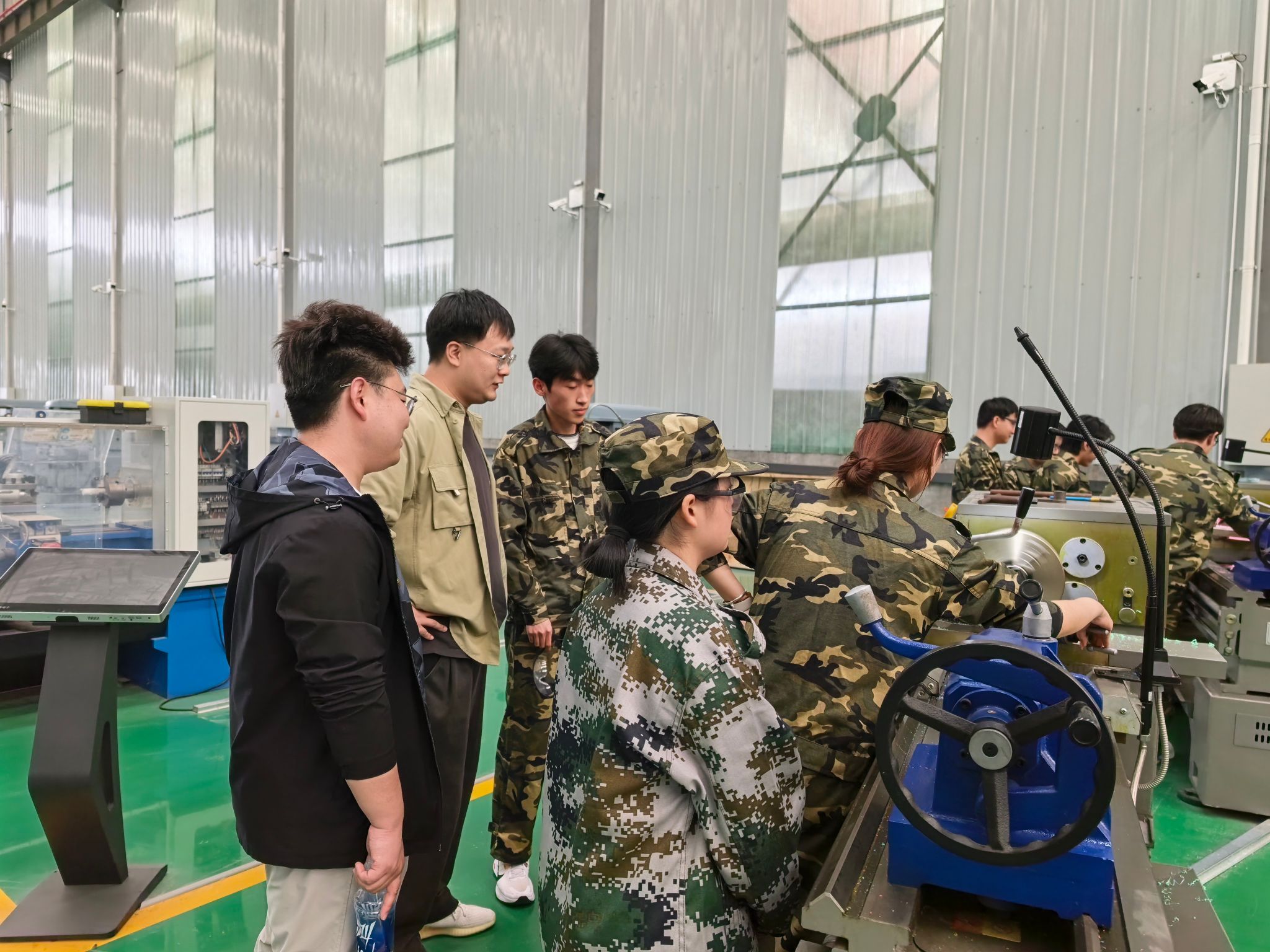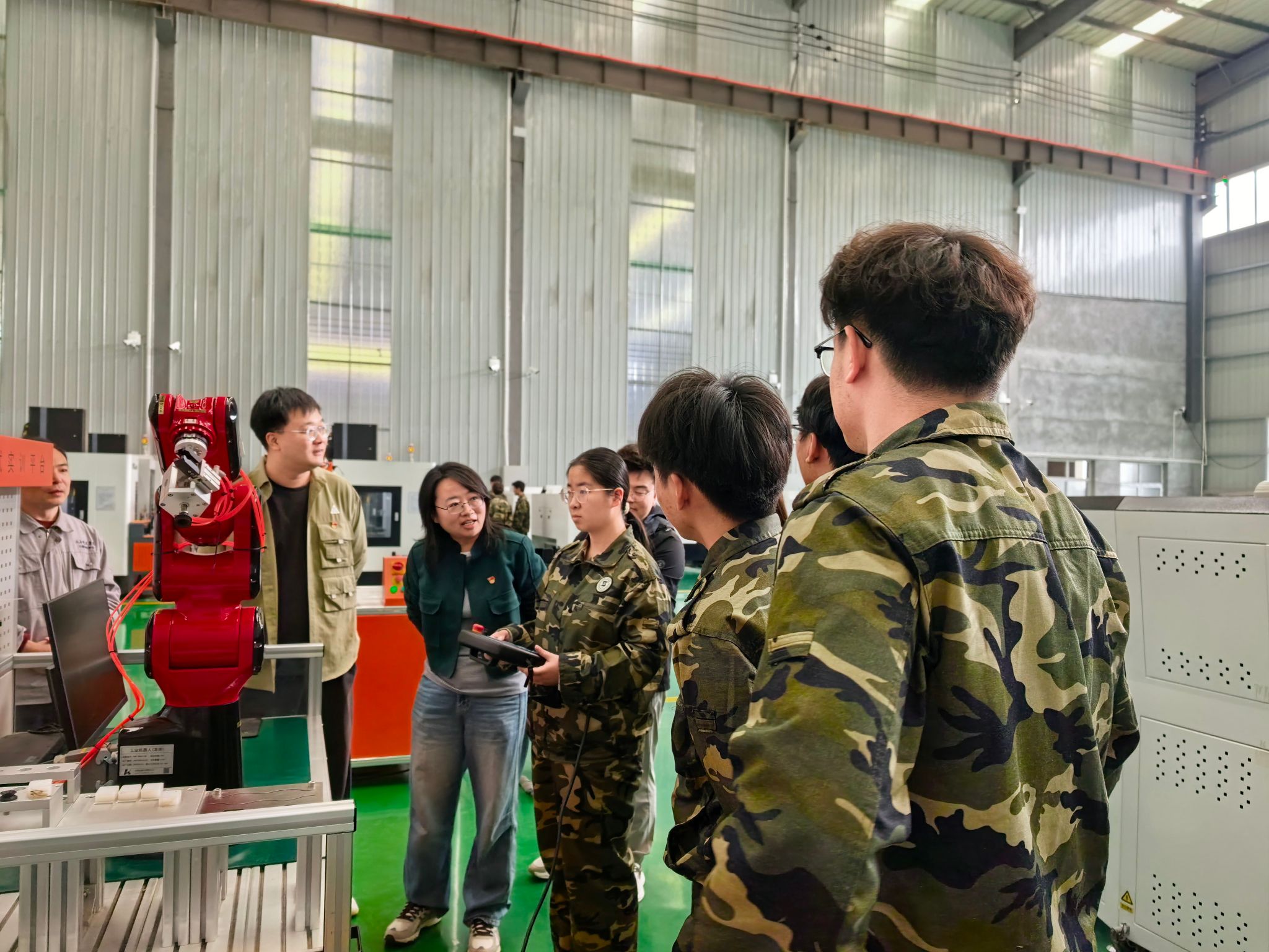 老师们详细询问学生的训练进度、实操难点等,认真观察同学们的设备操作规范,对大家专注严谨、积极投入的学习态度给予充分肯定。看到同学们熟练进行各实习工艺,主动探索实训中的技术难题倍感欣慰。现场针对学生提出的设备故障排查等问题进行耐心解答,并结合自身教学与工程实践经验,分享实操技巧与注意事项,助力学生突破训练瓶颈,用实实在在的育人行动诠释正确政绩观。
