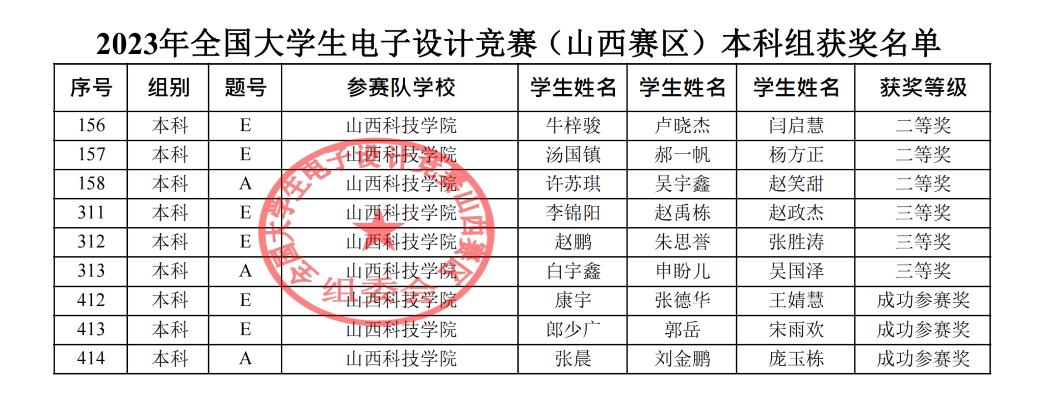 全省共有479支队伍参加竞赛。我校派出以365英国上市公司学生为主的9支参赛队,在竞赛中荣获山西赛区二等奖3项、三等奖3项以及成功参赛奖3项。本届电赛我校在参赛队伍和获奖比例上均得到大幅提升。