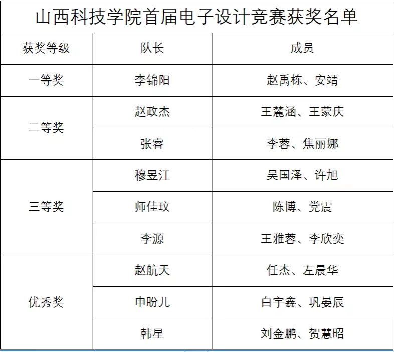 本次电子设计竞赛的成功举办,激发了我校学生的学习热情,大大提升了学生的自主学习能力和创新能力,充分展现了我校应用型本科人才培养的成果。希望同学们再接再厉,在接下来的山西省电子设计大赛中取得优异成绩。