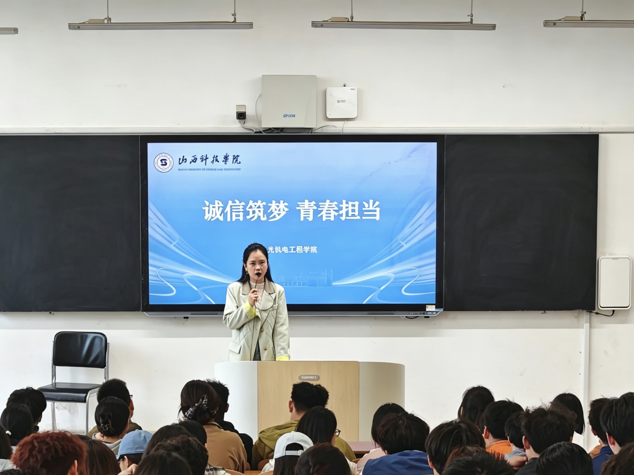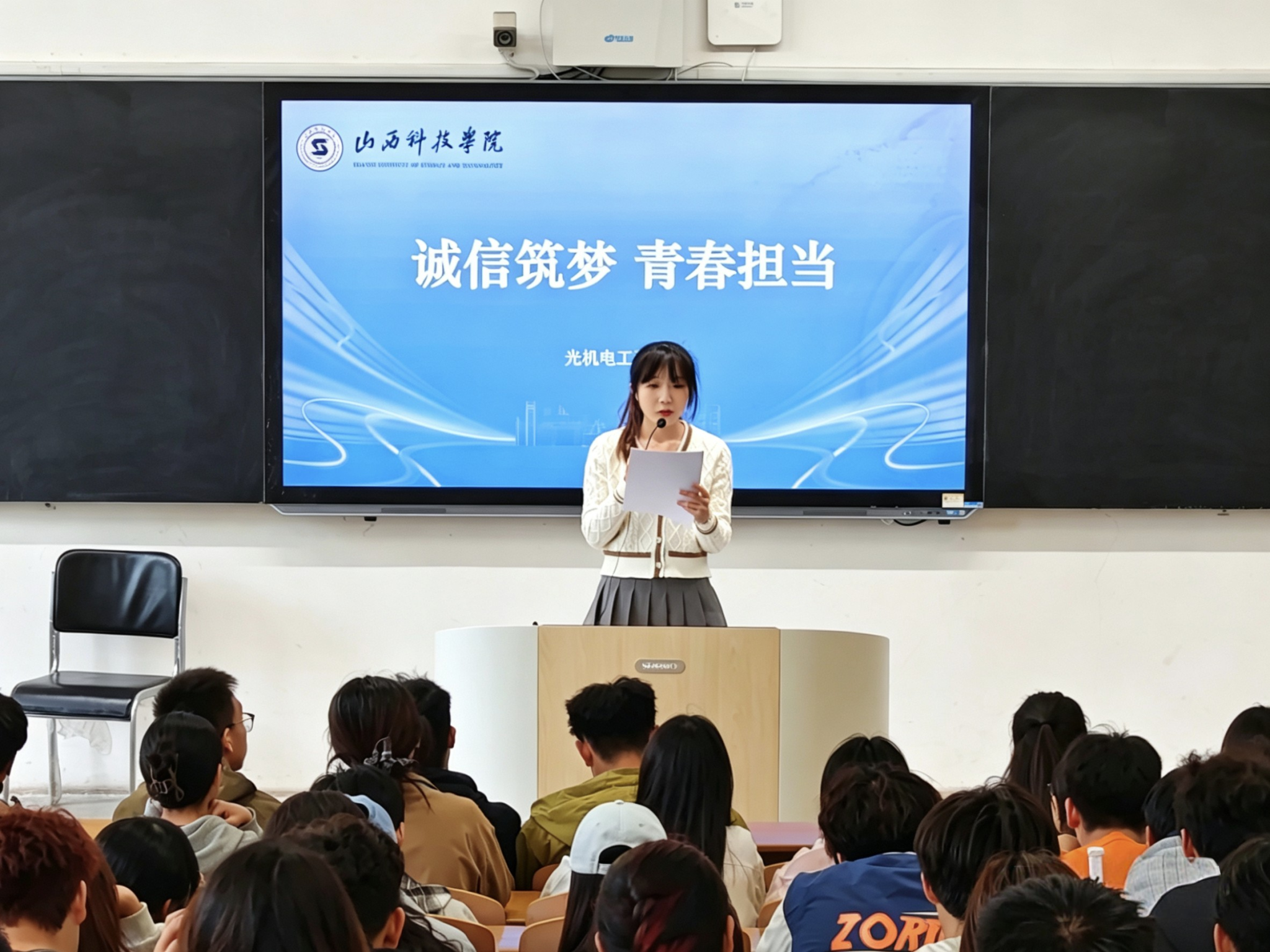 会上,经学院层层遴选的几位优秀学生典型依次登台,结合自身学习生活与受助经历,分享诚信立身、自强奋进的成长故事。他们中,有人严守学术诚信,以端正学风取得优异成绩;有人直面生活困境,勤工俭学、自立自强;有人心怀感恩,恪守承诺,用实际行动诠释责任与担当。真实鲜活的事例、朴实真挚的表达,充分展现了光机电学子诚实守信、自立自强的精神风貌。