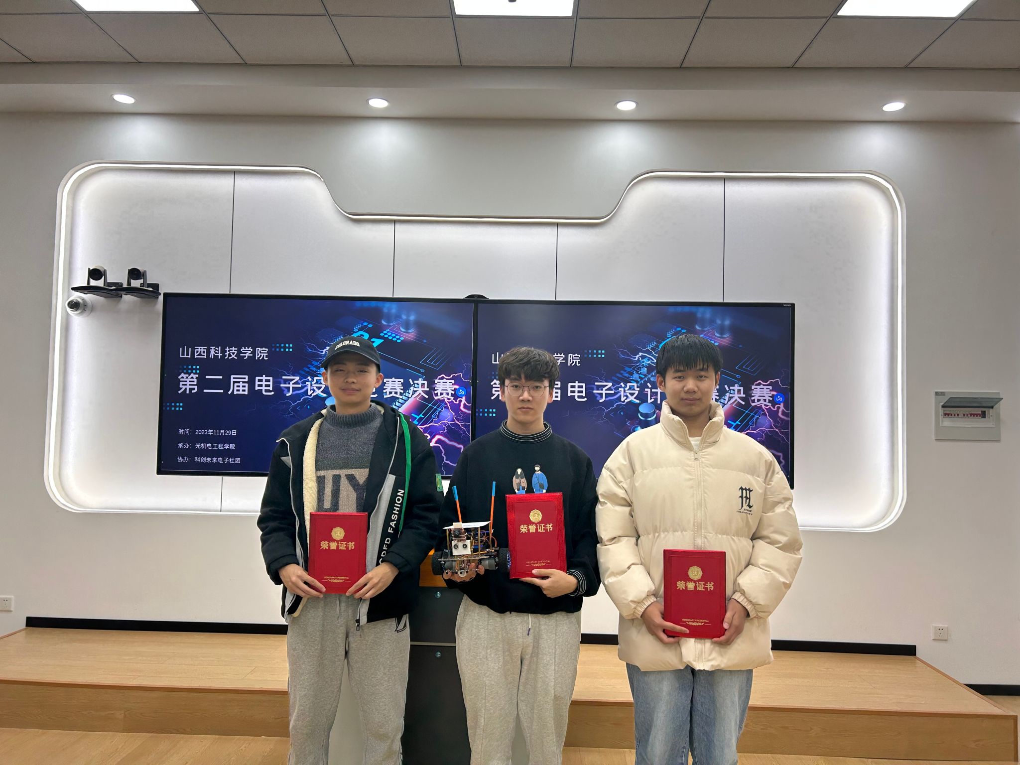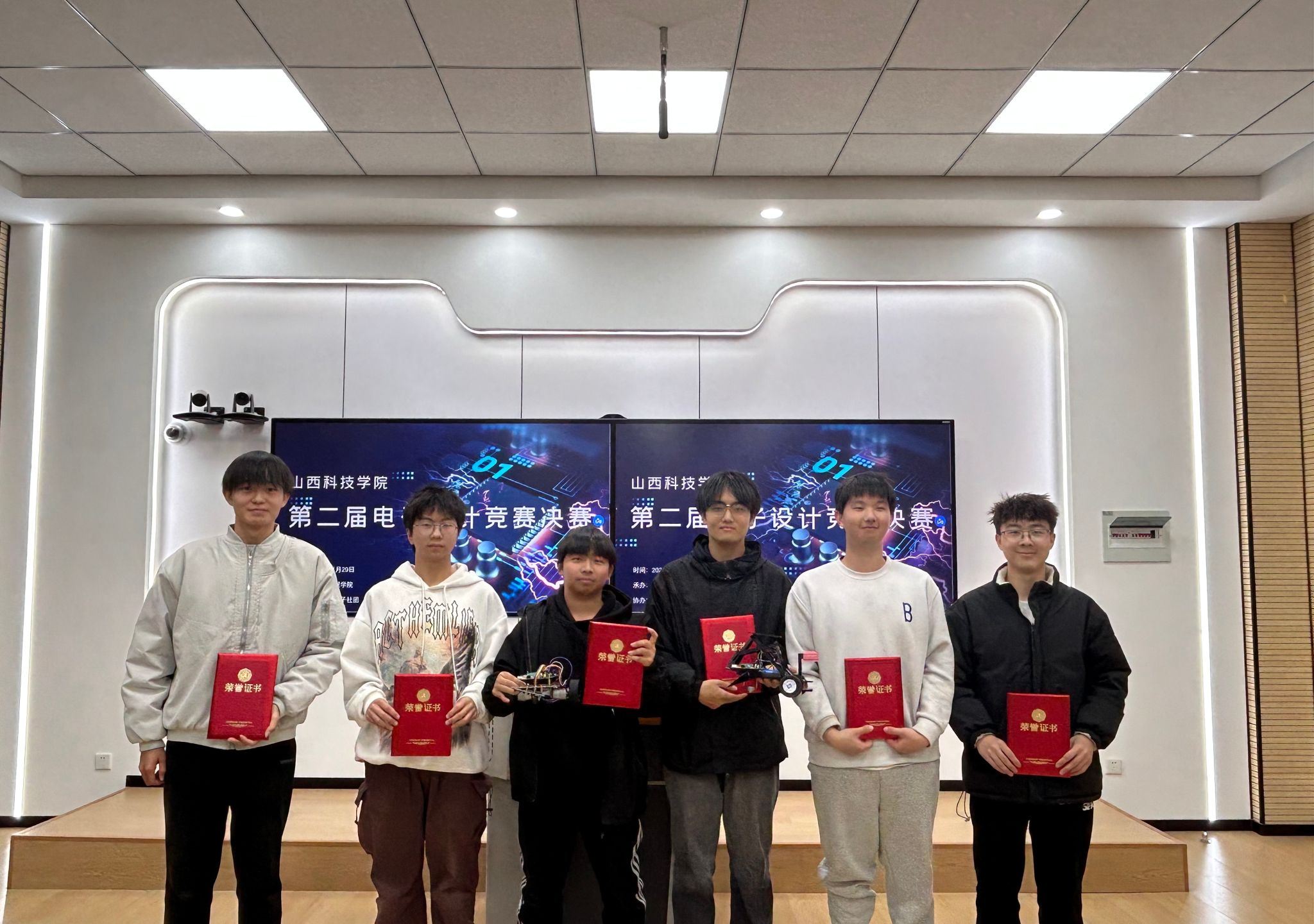 本次比赛中,共计5支队伍参加竞赛,经过激烈的角逐,最终评审一等奖1项,二等奖2项,三等奖2项。